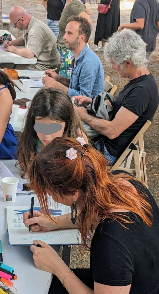 Trois auteurs étaient présents pour les échanges et dédicaces : Gaya Wisniewski (illustratrice de « Ma plus belle ombre » qui était venue au collège le 18 mars dernier rencontrer les 6eA et d’autres élèves de l’atelier Tatoulu), Stéphane Servant (« Monstres », niveau CM2-6e) et Régis Lejonc (« Le berger et l’assassin », niveau CM2, titre en lice en 2022-23).