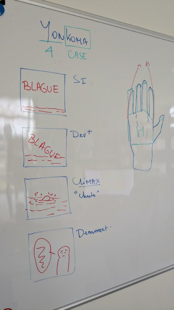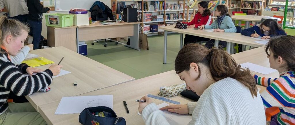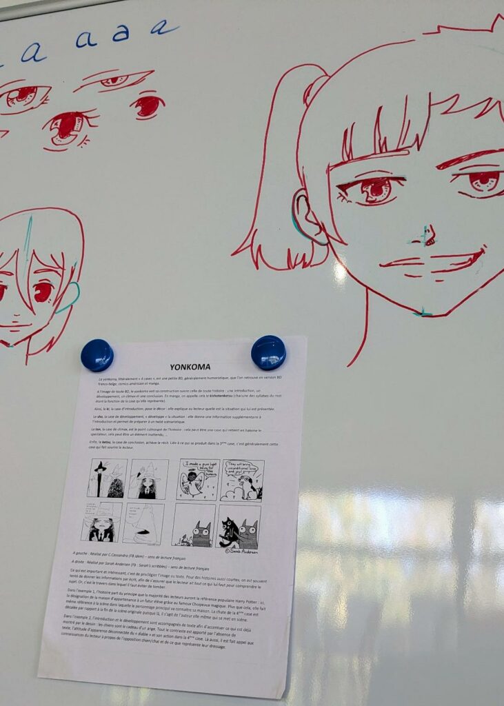 Dans le cadre du prix Manga Senseï et de l’atelier Culture japonaise, les élèves ont bénéficié de l’expertise et du professionnalisme d’une mangaka de l’EIMA toulousaine (Ecole Internationale du Manga et de l’Animation) pour apprendre à créer une courte bande dessinée humoristique de 4 cases sur le thème de l’environnement. Un genre apparu au Japon dans les années 40, à l’instar des « comics trips » américains, un manga au départ dont les cases sont disposées de manière verticale pour raconter une scène de la vie quotidienne.