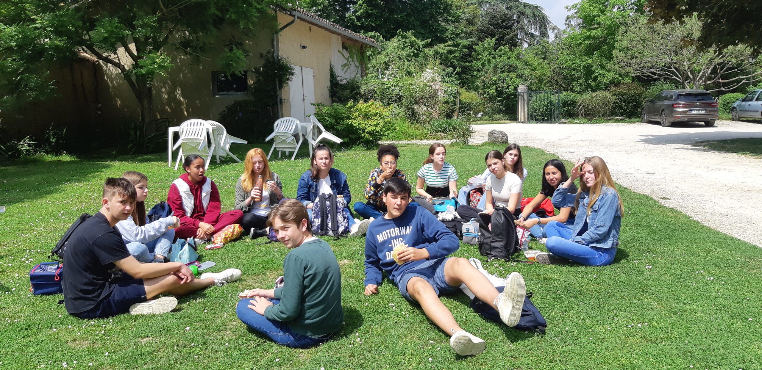 Pendant le pique-nique à l’abbaye de Boulaur, la directrice du collège la rejoint le groupe : une manière de signifier aux élèves qu’elle les encourage et les soutient dans cette démarche personnelle et cette étape importante vers la Confirmation. A 14h, Sœur Maëlys a témoigné de l’importance de la confirmation en prenant exemple sur les Saints. Puis les élèves se sont trouvés à l’office de nones. Enfin, pour terminer cette journée riche en partages et en enseignements, Jérôme BONALDO, un séminariste du Diocèse a interpelé les jeunes dans un temps d’enseignement sur les vocations.