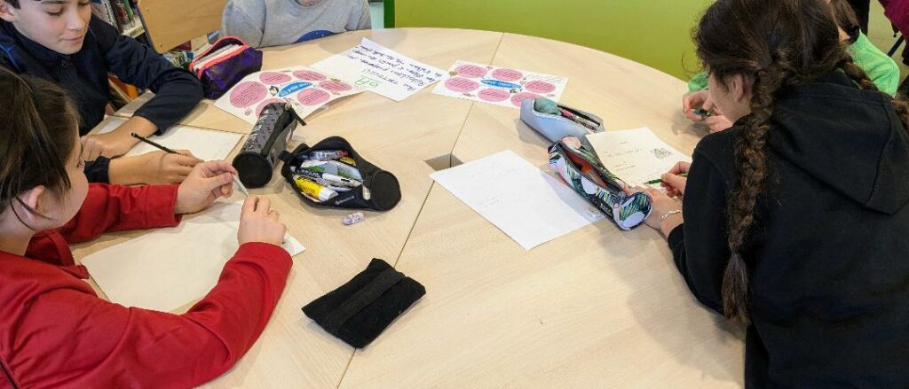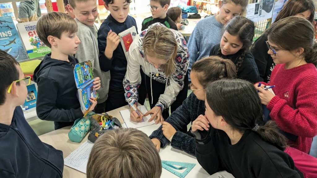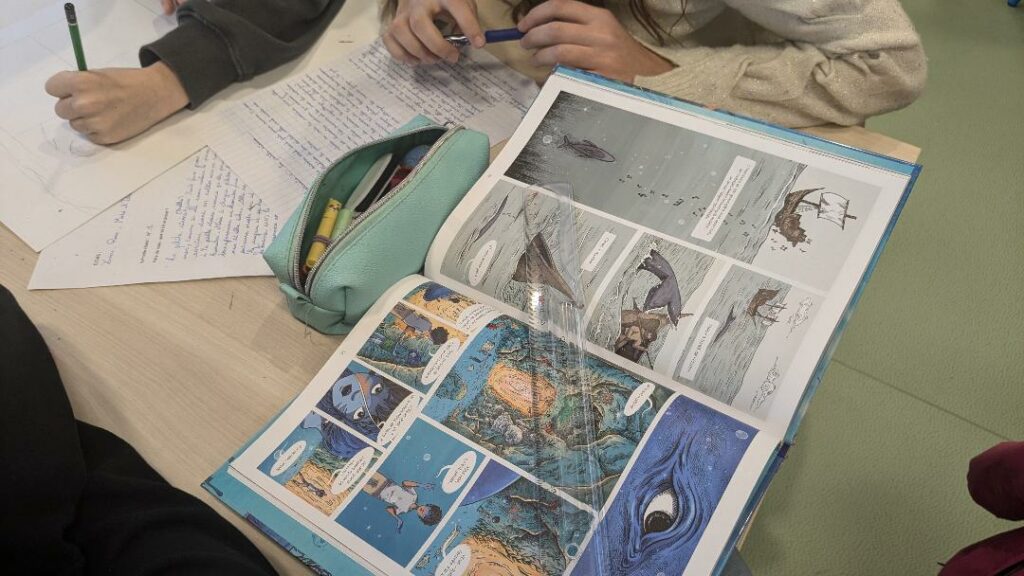 Dans le cadre du projet Océans auquel participent les élèves de 6eC (SVT, français et EMI), Séverine de La Croix, autrice jeunesse de la BD « Mission océan », présente au festival léguevinois, est venue prêter main forte mardi 4 février dernier dans l’écriture d’un scénario de bande dessinée ayant pour mission de sauvegarder les océans.