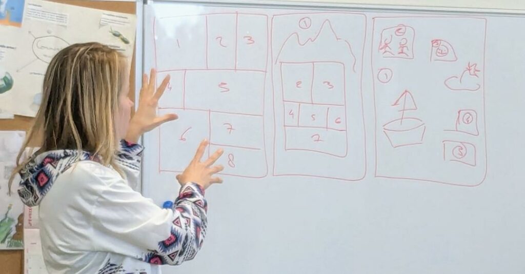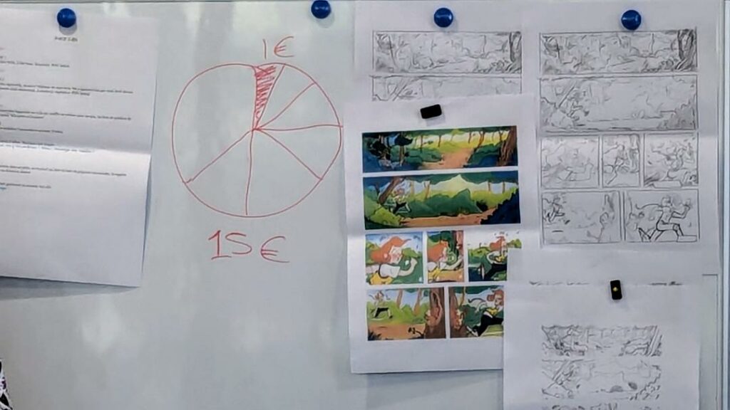 Les conseils avisés de l’ancienne assistante réalisatrice de cinéma ont donné naissance à 7 maquettes, du scénario choisi au découpage en cases de bande dessinée, que les équipes ont continué à travailler le lendemain, à l’aide de documents sur la cause environnementale, des idées plein la tête !