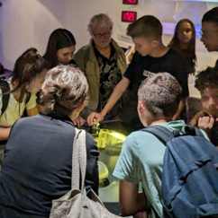 - Déambuler aux différents niveaux des expositions en participant aux expériences scientifiques interactives dans le but d’explorer notre galaxie, de comprendre le fonctionnement des satellites, le quotidien des astronautes…
