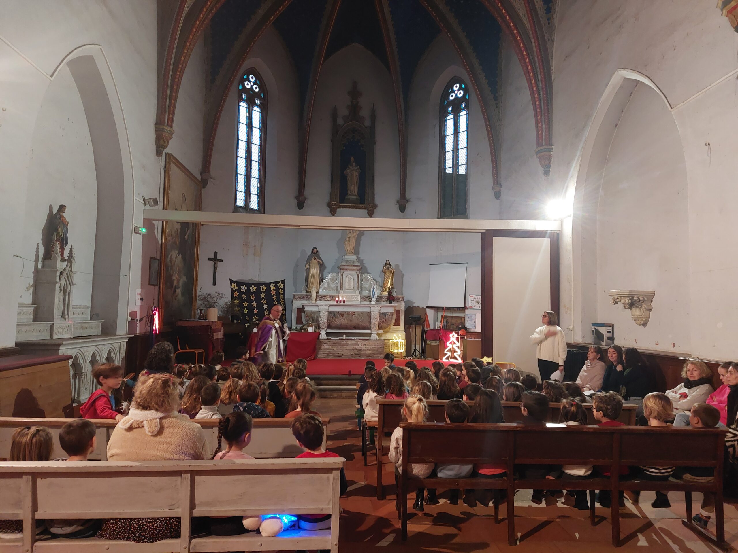 Une veillée pour chaque niveau de cycle Maternelle, Primaire, Collégiens 6eme 5eme, puis 4eme 3eme. Chacun est reparti le coeur rempli d’espérance, de joie, d’amour et de Paix.